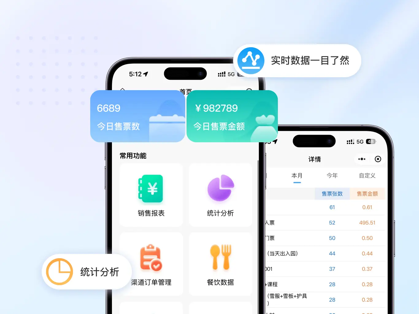 决策实时化,让管理“运筹帷幄”强调“实时数据”和“随时随地”。无论是今日票务销量、金额,还是园区闸机刷脸次数,所有关键经营数据都能实时更新、一目了然。